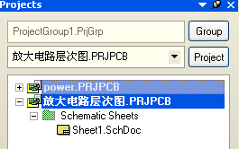 ⑧ 打开projects面板,选中工程项目“放大电路层次图.PrjPCB”,执行Projects/Compile PCB Project,完成对该项目的编译。